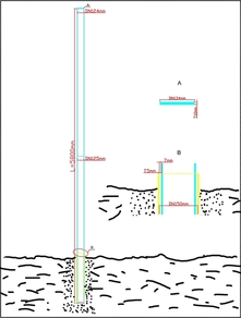 Passive HF antennaThe best passive HF antenna design that we have found is described below. It necessitates no guy-wires and has no radial wires over ground. As of 2024, more than 800 of these antennas have been built in the Philippines, Hawaii and Mexico at 8, 12, 16 and 27 MHz, and resisted typhoons with no breaking. It scales with no modification from 4 MHz to 30 MHz, and has been used in 65 deployments. Electrically, the antennas are normal-mode helical compact monopoles (Kraus, J.D., “The Helical Antenna”, Proc. I.R.E. 1949 pp. 263-272). They consist of a vertical wire of length λ/4 wound over a mast of height λ/8 and diameter λ/300 to achieve a 50% height compression, a 3-loop tuning air-coil, and a network of 4 radials of length λ/4 on the ground or buried at shallow depth (1-2 cm) (λ is the electromagnetic wavelength). Radials and vertical wires are made of standard solid core AWG14 wire or PE-jacket antenna wire. The air-coil ellipticity, hence the cross-area of the loop and the inductance, is adjusted to achieve resonance using a standard commercial VSWR meter. When tuning is complete, the loop is fastened to the mast with electrical tape and zip-ties. The mast consists of a thick vertical tube, made of fiberglass, ABS drain pipe, PVC water pipe, solid wood and bamboo. The dimensions given in the sketch below are for 8 MHz; multiply by the ratio of frequencies for measurements at other frequencies. The mast is planted in a hole in the ground, and adjusted/held vertically by wooden or plastic wedges; about 1/5 of the length should be underground, and 4/5 above ground, thus the total length of the mast is λ*5/32. In rock, the hole can be drilled directly with a hammer drill and a carbide bit. In consolidated soil, the hole can be drilled with a mechanical auger; a fiberglass liner of a slightly larger diameter than the antenna will prevent collapse of the hole, the void being filled with self-leveling cement. In sand and gravel, a hole should be shoveled out, and a reinforced concrete base built with a fiberglass liner to hold the antenna. The assembly consists of a RG-213 pig tail, the vertical being directly soldered to the center conductor, and the radials to the shield; the connections are then potted in Scotch-cast or similar electrical resin. Details of construction are found here. Summary: