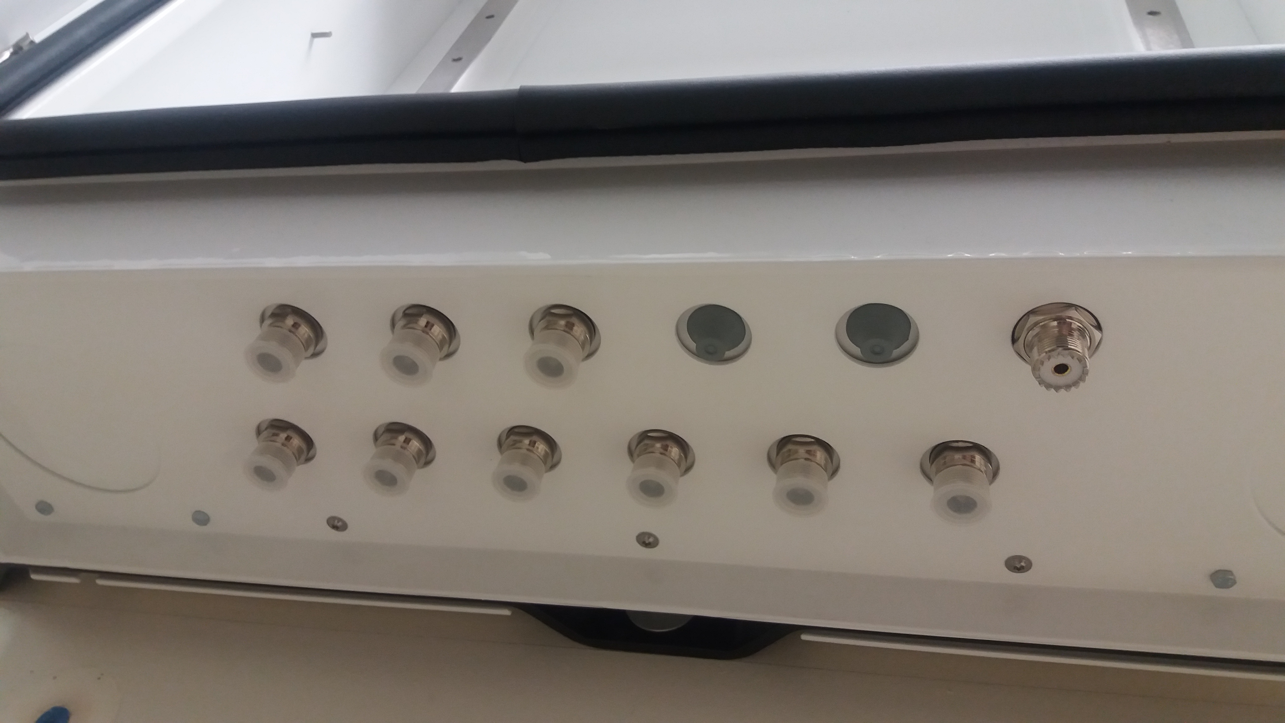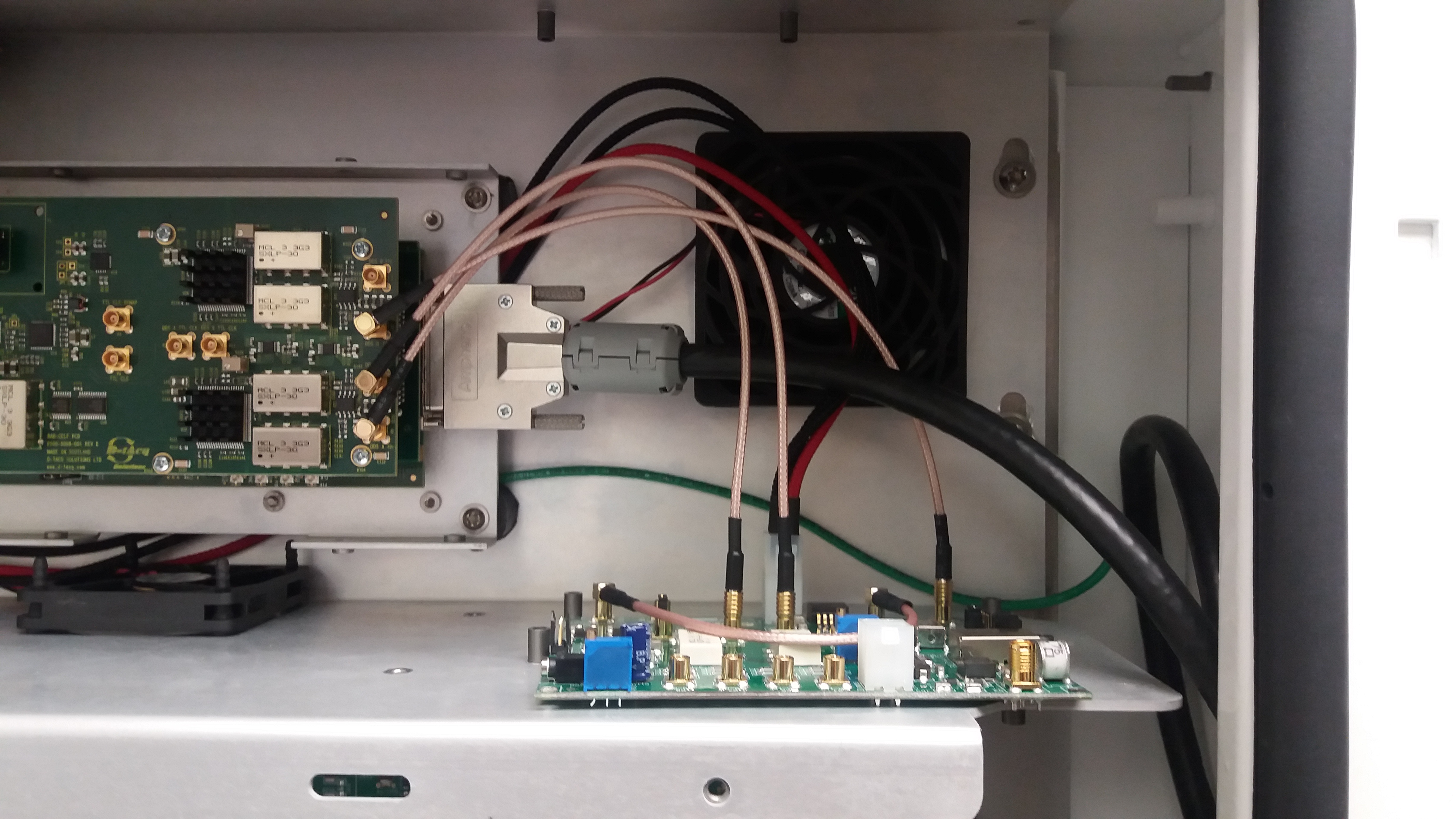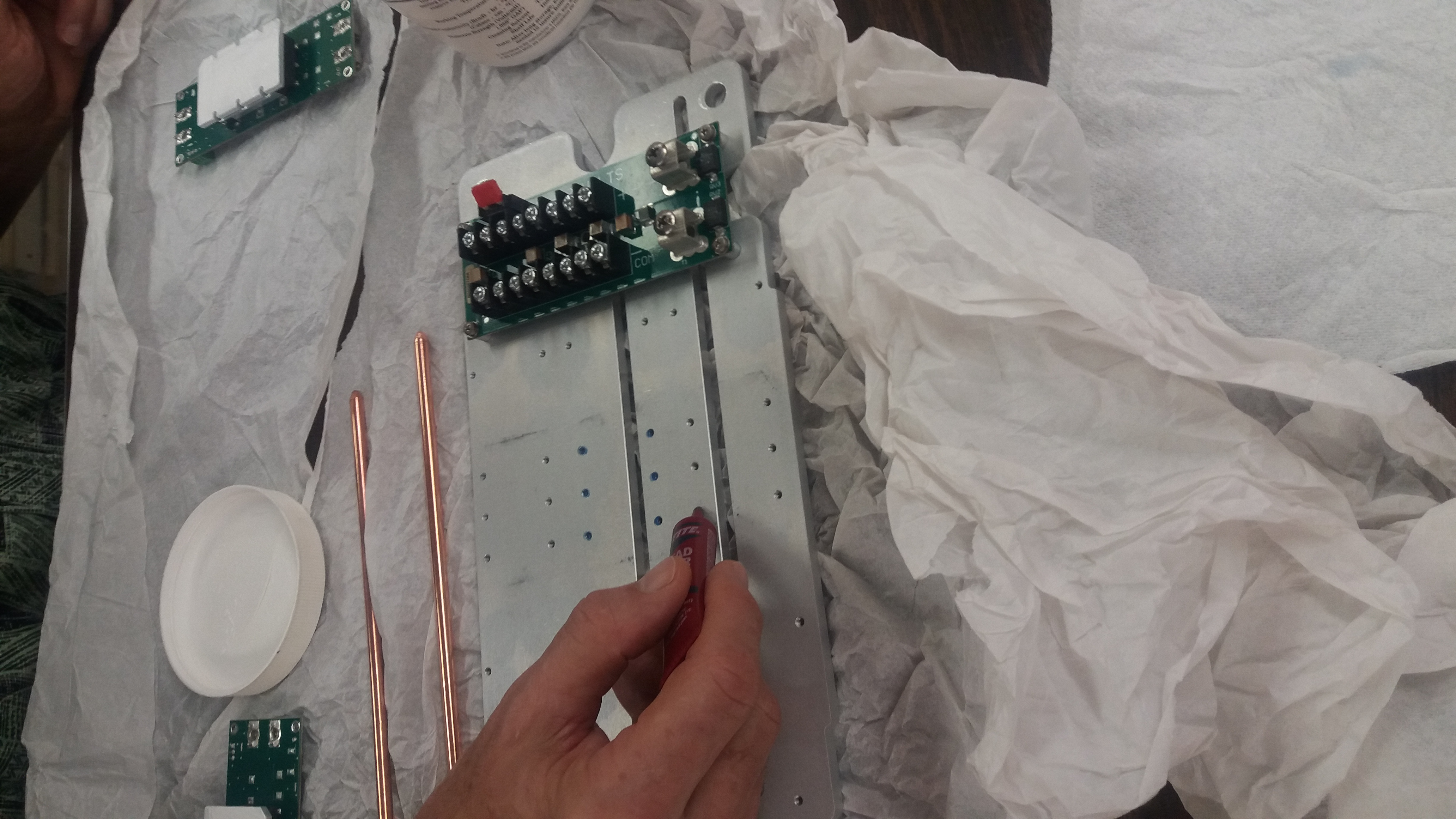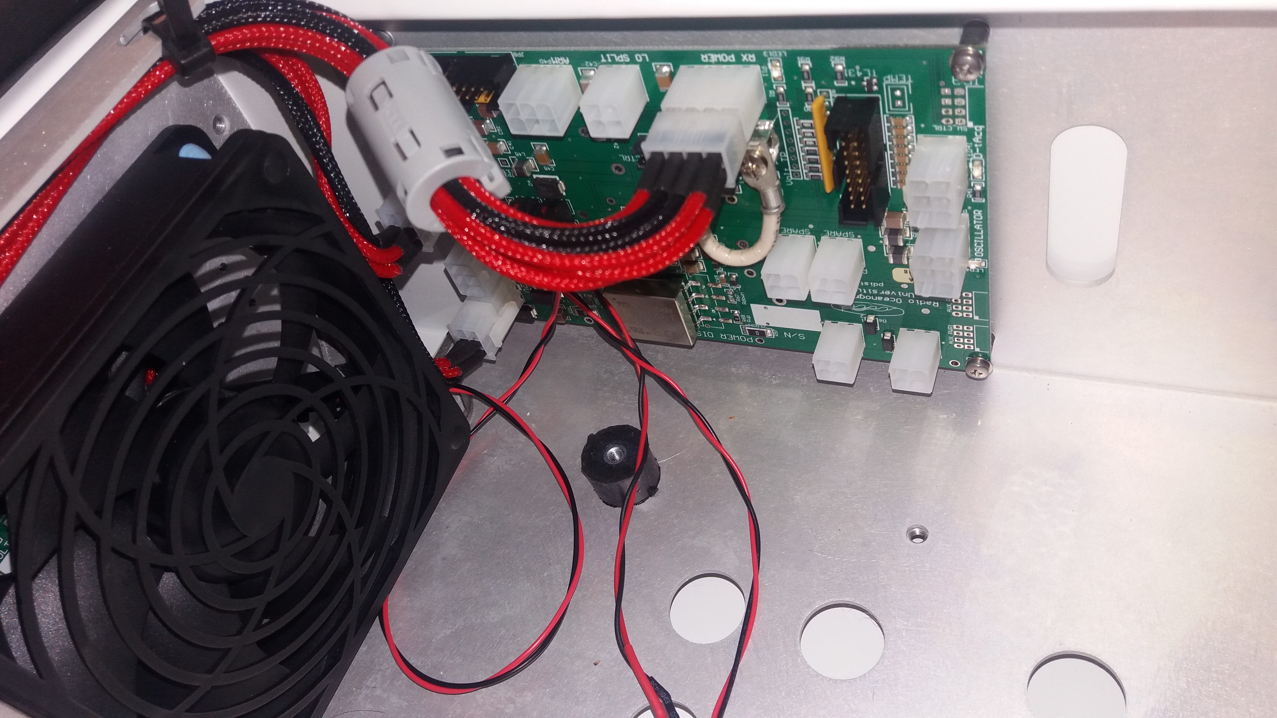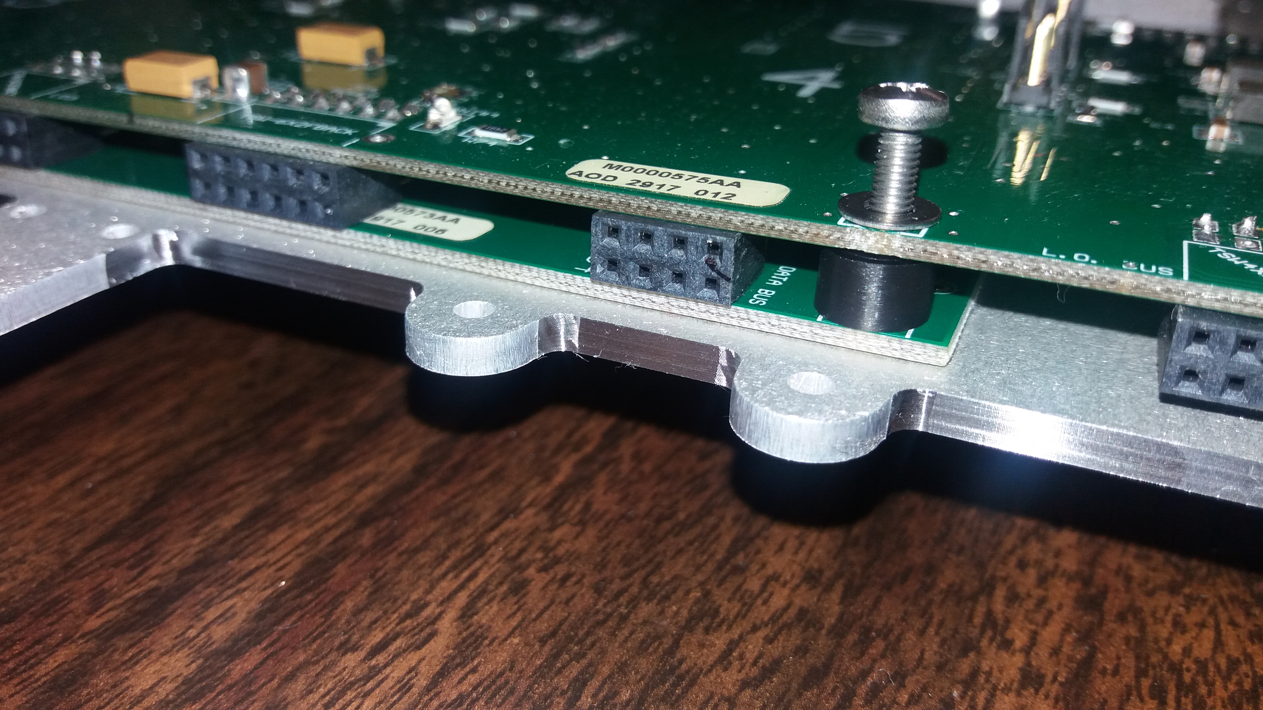 The plates are assembled on which the 8 crx cards will be placed. (Be careful with these plates because they can break if force is applied at certain points). The plates are going to be joined with 4 screws in the center and a glue (network) is applied so that they do not come loose (this will be placed at the end of the screw, the excess is removed). We must ensure that the two plates are even because above this anger the first plate with the antenna numbering (analog back plane) and it is important that they are even the bottom plates (preferably on a flat surface, it does not matter if the tabs are not at the same level, the important thing is that the top is at the same level. The first plate (analog black plane) is placed and on top of that the other plate is placed (LO back plane). To this plate we have to put the pins of the jumper, one is placed first and then others and on those the card will be soldered (circuit). The two plates are screwed to the base with 10 screws. Between the two plates are placed black spacers a single washer so that the connectors to the upper and lower plates are aligned. After installation, but thread lock onto the screws from underneath. Before putting the plate to the aluminum structure, you must check the length of the screws, so that they are not touching the bottom of the structure. At the end of the screw the glue (blue) is applied and excesses are cleaned. Note = the screws on the edge of the plate are shorter. Connect coaxial cables Before connecting the coaxial cables of the crx-8 plates to the antenna connectors, the liquid should be applied to clean connectors (contac lubricam) in order to avoid corroding (it should be applied a little more, avoid excesses) . It should also be put on the connectors where you can get noise like the scsi and the jumper. Power distribution supplies To have the complete plates of the vicor board the first thing that was done was to solder a resistance to the circuit and later a vicor module (v28c15c100bl) was incorporated in the lower part and the pins were soldered in the circuit, it is important that the welding cover the pin center and pass through the center of the pin to the bottom of the plate. The output of the plate must be 12.5 volts. (note = if we use 8 channels we will use 2 of these board and if we have 4 channels we use 1). Also, screw the little screws on the green connectors all the way in so they do not fall off. These circuits are put in turn in another base that is installed in the large structure (box), at the base of the vicor module a glue is applied and it is spread all over the base of this before putting it in the base, it is to ensure that the entrance of the vicor board that is being installed is on the correct side where it is going to connect with the input terminal board, in the holes where the vicor board is to be screwed, blue glue is applied. To install it is placed at the base of the vicor module on the other base and the base is moved a little to spread the pagemento but only a little. In the lower part of the base is applied glue and in the heat had (barilla) also before inserting in the orifices (if two plates are used also two heat pipes are used, care must be taken to install the correct side tuvos of heat). In the lower part of the plate glue is spread trying to cover where are the heat tuvos and part of the plate, also draw a square where the plate will go in the structure and also add glue. (NOTE = it is important that when the whole plate is installed in the structure it does not have the input card terminal because with the screw of the structure it does not fit well, so first the plate is placed in the structure and blue glue is applied to it. screw and then the input terminal card will be installed). You must clean excess glue. And they are going to put additional screws because the glue was coming out to the top of the plate. After everything is installed on the board, two cables will be connected per board between the vicor board and the input terminal board (if it has 8 channels, there will be 2 vicor board so 4 cables will be connected between the vicor board and the input terminal card). The black wire will always go in the row above (-) and the red in the row below (+), can be connected in any of the screws does not matter, except for the first one that corresponds to the ground in the input terminal, on the vicor board in the same way it is corroborated that the black wire is in the screw that says (-) and the red in which it says (+). On the other hand, at the output of the vicor board another 11 "cable is connected (make sure that black is on (-) and red on (+)) that goes to the power distribution. if you have 2 vicor plate there will be two cables that go to the power distribution plate, but if you have only one vicor in the same way you need the two cables, only in the vicor the two cables will be connected in the same place but in the power distribution anger connected as if we had two vicor plate). Antenna adapters (connector plate) The type M power connector (VHF connector) was installed in the lower right (for this the size of the hole had to be enlarged to 7.2 mm (confirm measurement)). To place the connector it put a nut, a guacha and an O-ring on the bottom (out) and on the top (in) a guacha and a nut. Later in the holes of the upper part we installed connectors type SMA to type N and in 3 holes of the lower left row (nut, guacha, plate in the upper part). to adjust kegs use 19 mm and 18 mm keys, so they are aligned. Note = if only 4 channels are used, black plugs are placed on the channels that are not going to be used. In the other two holes a gray plastic pressure plug was placed (it is placed towards the lower part (out)), before placing them with the deburring, the hole was softened and silicon (Heavy Duty silicone) was applied to lubricate them. Before installing the plate in the structure (box) apply blue glue in the screw holes (so that it doe