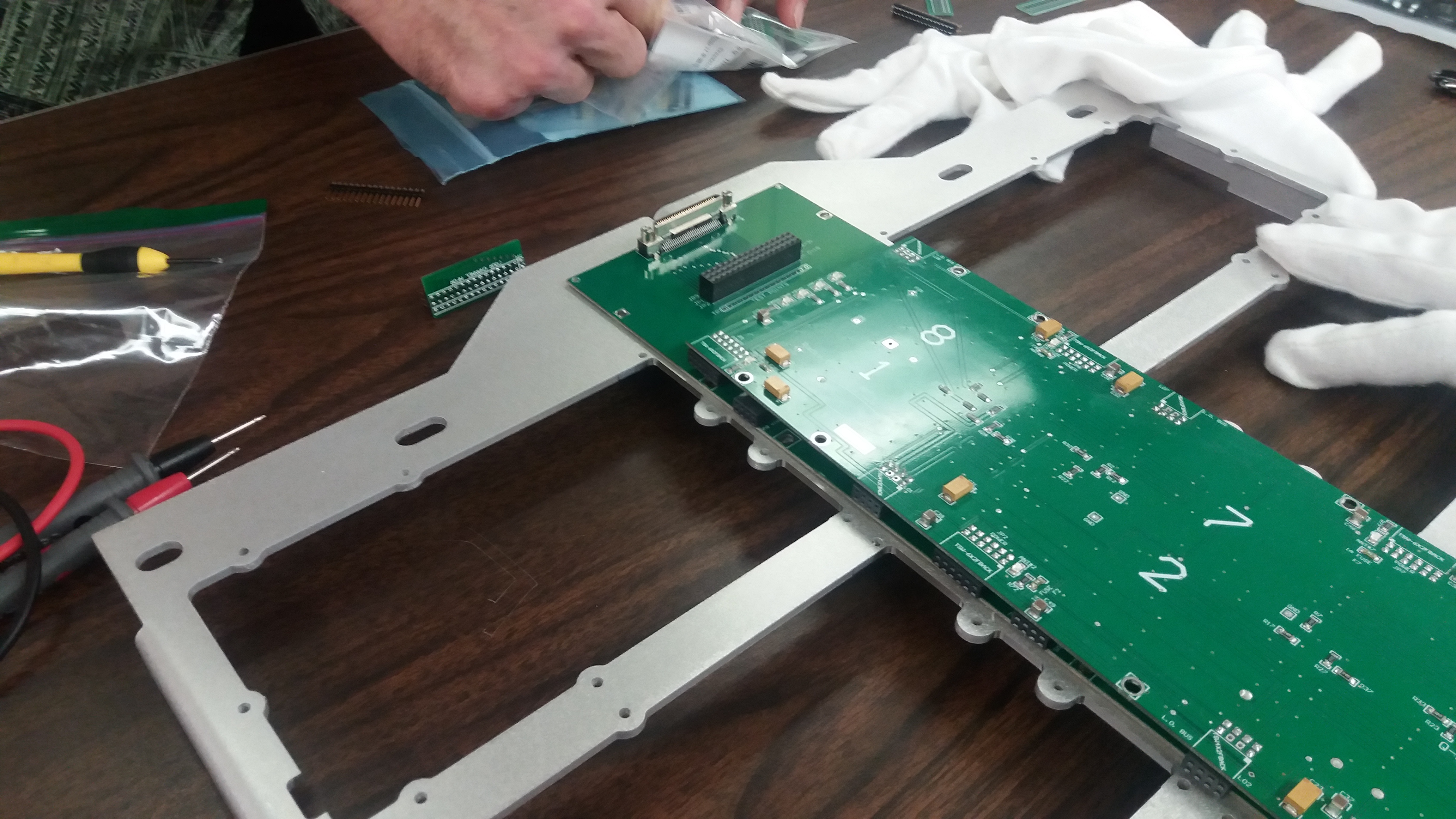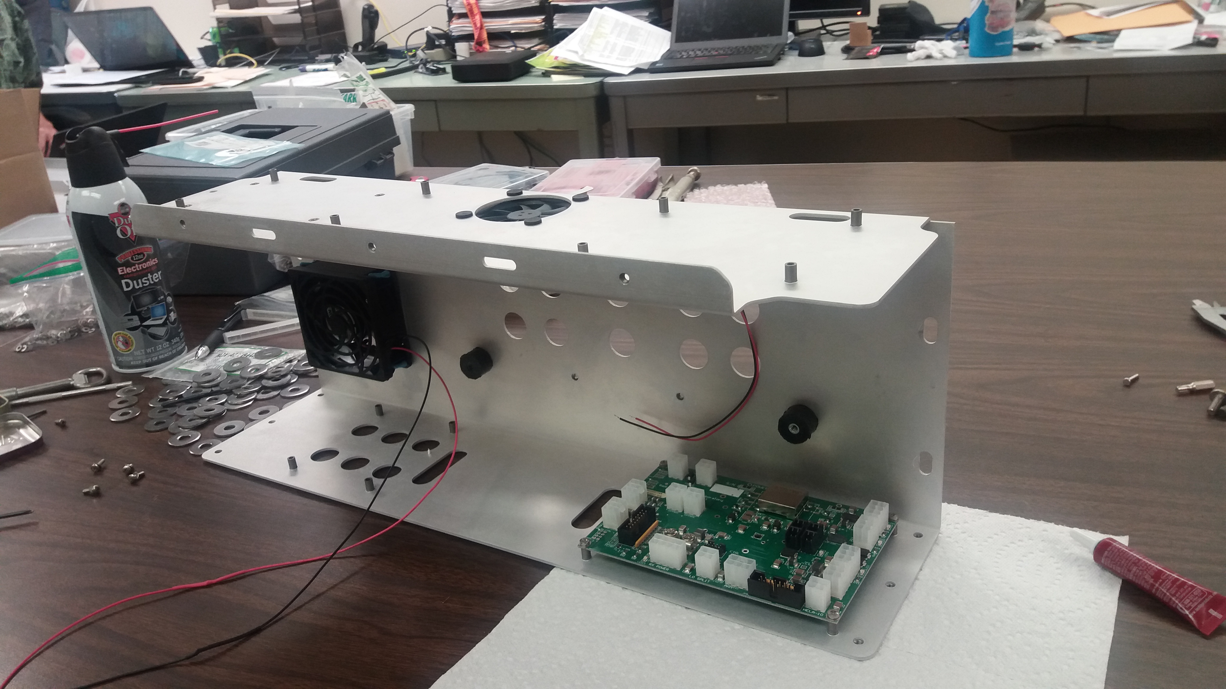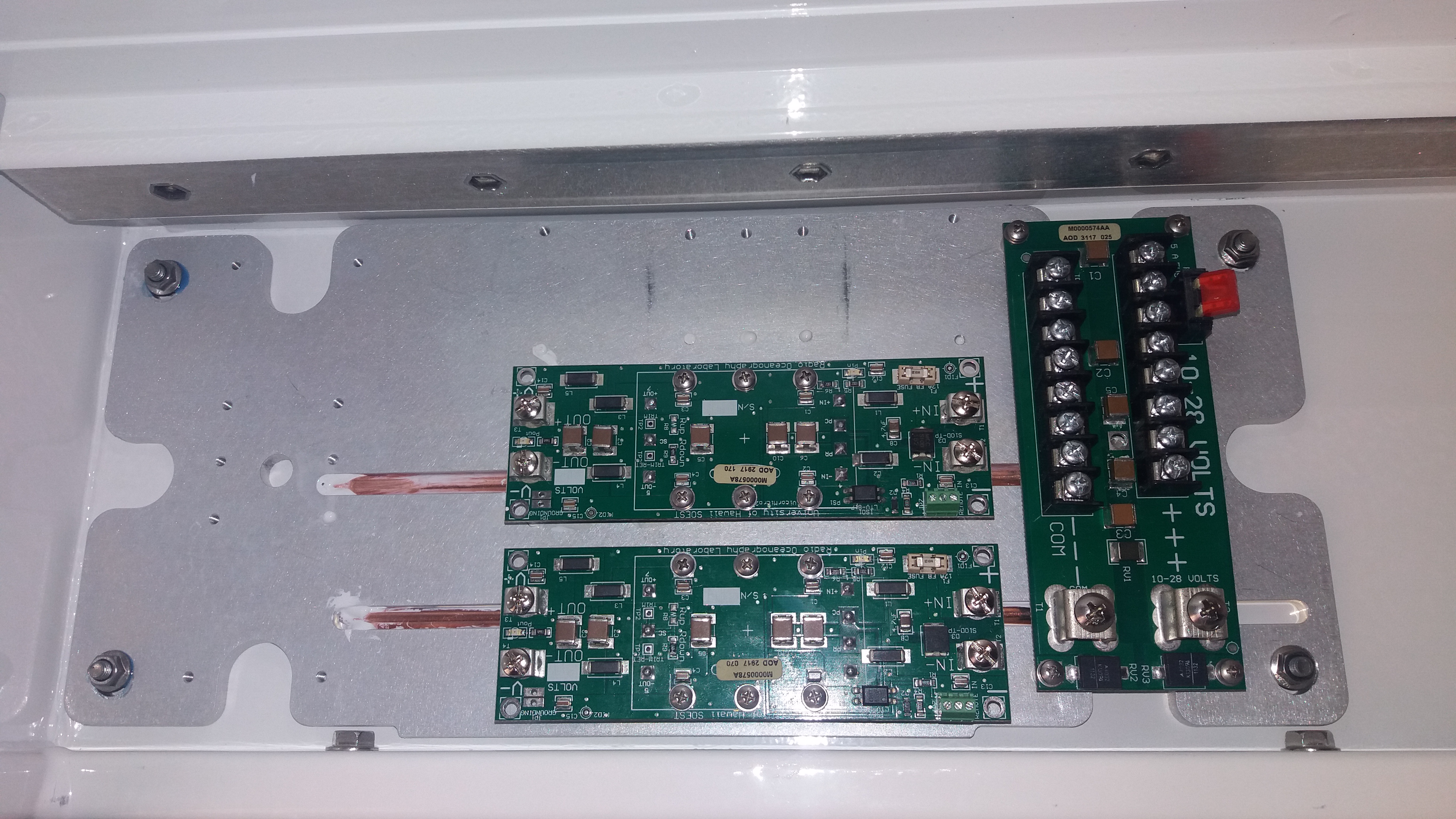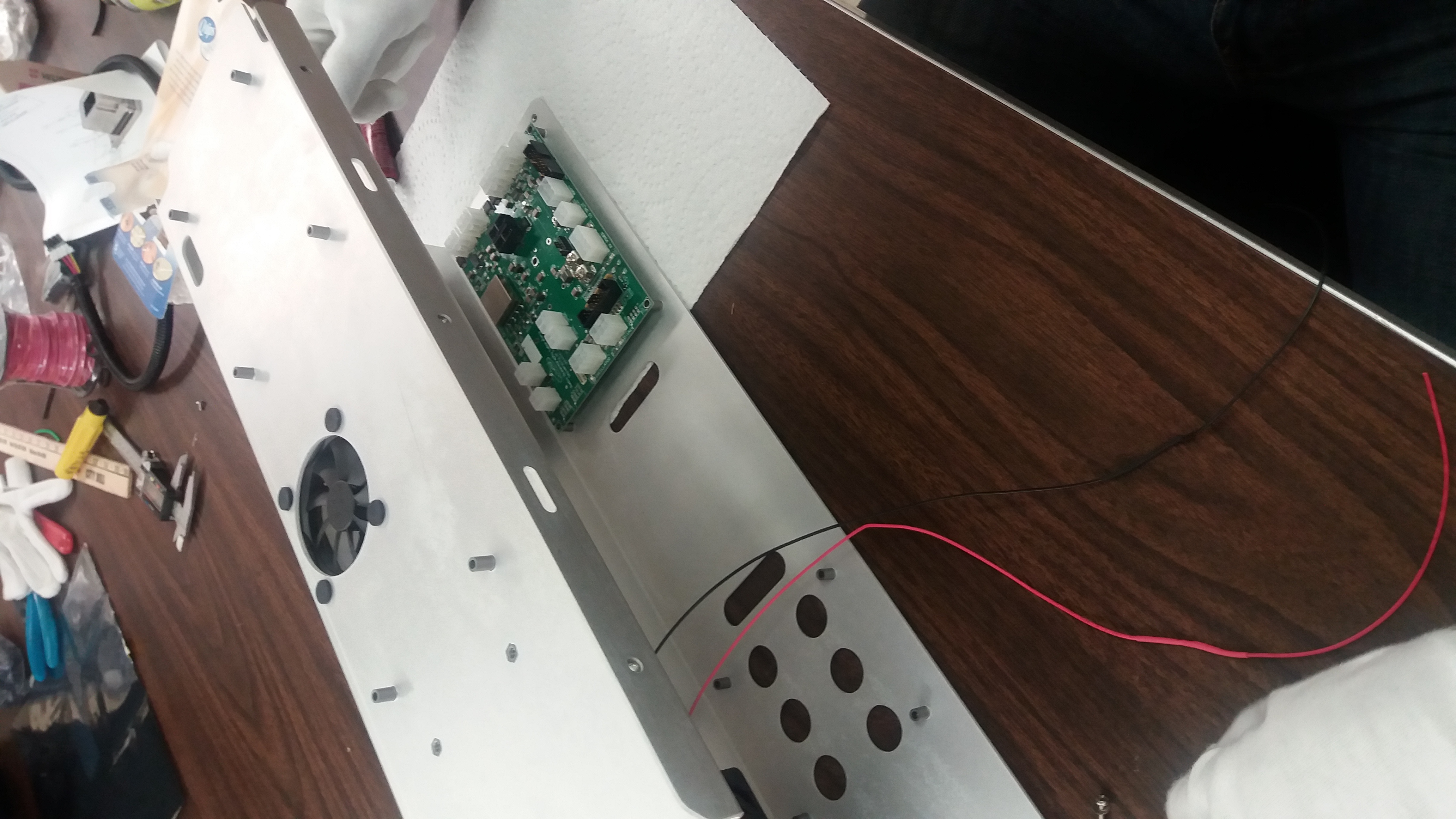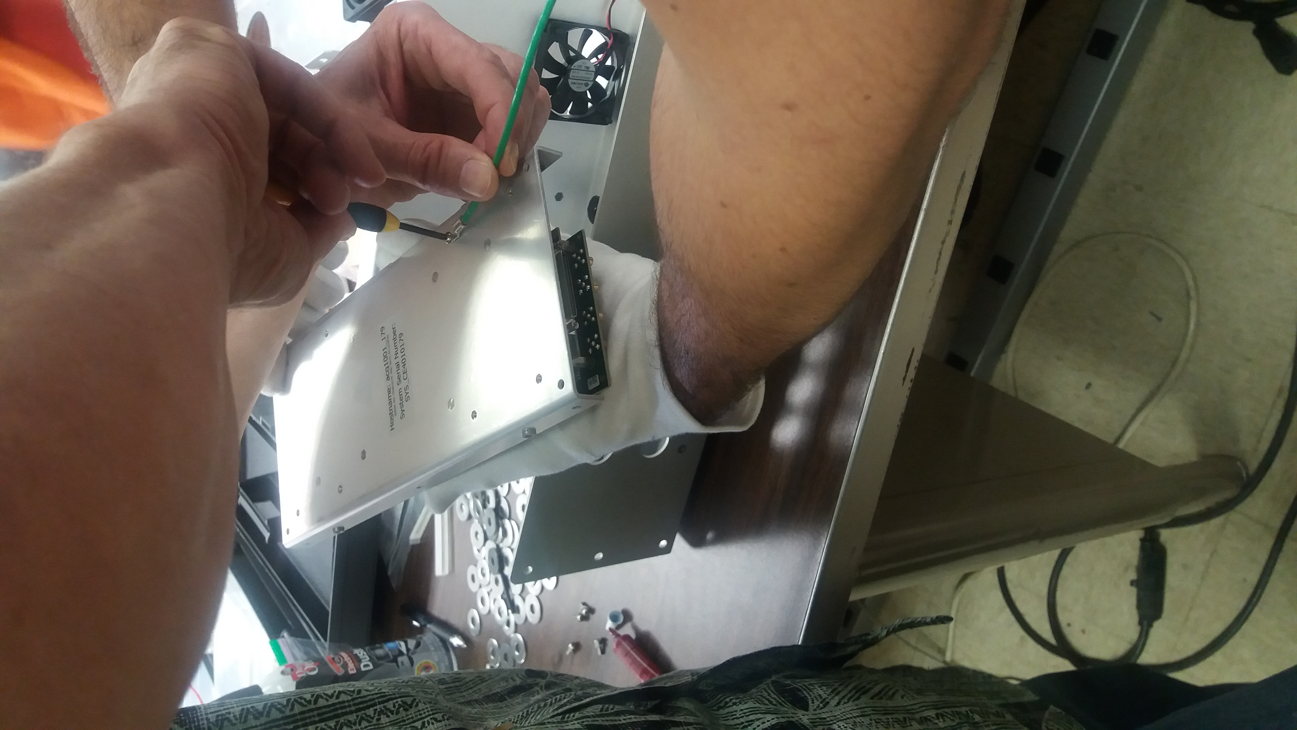The plates are assembled on which the 8 crx cards will be placed. (Be careful with these plates because they can break if force is applied at certain points). The plates are going to be joined with 4 screws in the center and a glue (network) is applied so that they do not come loose (this will be placed at the end of the screw, the excess is removed). We must ensure that the two plates are even because above this anger the first plate with the antenna numbering (analog back plane) and it is important that they are even the bottom plates (preferably on a flat surface, it does not matter if the tabs are not at the same level, the important thing is that the top is at the same level. The first plate (analog black plane) is placed and on top of that the other plate is placed (LO back plane). To this plate we have to put the pins of the jumper, one is placed first and then others and on those the card will be soldered (circuit). The two plates are screwed to the base with 10 screws. Between the two plates are placed black spacers a single washer so that the connectors to the upper and lower plates are aligned. After installation, but thread lock onto the screws from underneath. Before putting the plate to the aluminum structure, you must check the length of the screws, so that they are not touching the bottom of the structure. At the end of the screw the glue (blue) is applied and excesses are cleaned. Note = the screws on the edge of the plate are shorter. Connect coaxial cables Before connecting the coaxial cables of the crx-8 plates to the antenna connectors, the liquid should be applied to clean connectors (contac lubricam) in order to avoid corroding (it should be applied a little more, avoid excesses) . It should also be put on the connectors where you can get noise like the scsi and the jumper. Power distribution supplies To have the complete plates of the vicor board the first thing that was done was to solder a resistance to the circuit and later a vicor module (v28c15c100bl) was incorporated in the lower part and the pins were soldered in the circuit, it is important that the welding cover the pin center and pass through the center of the pin to the bottom of the plate. The output of the plate must be 12.5 volts. (note = if we use 8 channels we will use 2 of these board and if we have 4 channels we use 1). Also, screw the little screws on the green connectors all the way in so they do not fall off. These circuits are put in turn in another base that is installed in the large structure (box), at the base of the vicor module a glue is applied and it is spread all over the base of this before putting it in the base, it is to ensure that the entrance of the vicor board that is being installed is on the correct side where it is going to connect with the input terminal board, in the holes where the vicor board is to be screwed, blue glue is applied. To install it is placed at the base of the vicor module on the other base and the base is moved a little to spread the pagemento but only a little. In the lower part of the base is applied glue and in the heat had (barilla) also before inserting in the orifices (if two plates are used also two heat pipes are used, care must be taken to install the correct side tuvos of heat). In the lower part of the plate glue is spread trying to cover where are the heat tuvos and part of the plate, also draw a square where the plate will go in the structure and also add glue. (NOTE = it is important that when the whole plate is installed in the structure it does not have the input card terminal because with the screw of the structure it does not fit well, so first the plate is placed in the structure and blue glue is applied to it. screw and then the input terminal card will be installed). You must clean excess glue. And they are going to put additional screws because the glue was coming out to the top of the plate. After everything is installed on the board, two cables will be connected per board between the vicor board and the input terminal board (if it has 8 channels, there will be 2 vicor board so 4 cables will be connected between the vicor board and the input terminal card). The black wire will always go in the row above (-) and the red in the row below (+), can be connected in any of the screws does not matter, except for the first one that corresponds to the ground in the input terminal, on the vicor board in the same way it is corroborated that the black wire is in the screw that says (-) and the red in which it says (+). On the other hand, at the output of the vicor board another 11 "cable is connected (make sure that black is on (-) and red on (+)) that goes to the power distribution. if you have 2 vicor plate there will be two cables that go to the power distribution plate, but if you have only one vicor in the same way you need the two cables, only in the vicor the two cables will be connected in the same place but in the power distribution anger connected as if we had two vicor plate). Antenna adapters (connector plate) The type M power connector (VHF connector) was installed in the lower right (for this the size of the hole had to be enlarged to 7.2 mm (confirm measurement)). To place the connector it put a nut, a guacha and an O-ring on the bottom (out) and on the top (in) a guacha and a nut. Later in the holes of the upper part we installed connectors type SMA to type N and in 3 holes of the lower left row (nut, guacha, plate in the upper part). to adjust kegs use 19 mm and 18 mm keys, so they are aligned. Note = if only 4 channels are used, black plugs are placed on the channels that are not going to be used. In the other two holes a gray plastic pressure plug was placed (it is placed towards the lower part (out)), before placing them with the deburring, the hole was softened and silicon (Heavy Duty silicone) was applied to lubricate them. Before installing the plate in the structure (box) apply blue glue in the screw holes (so that it doe