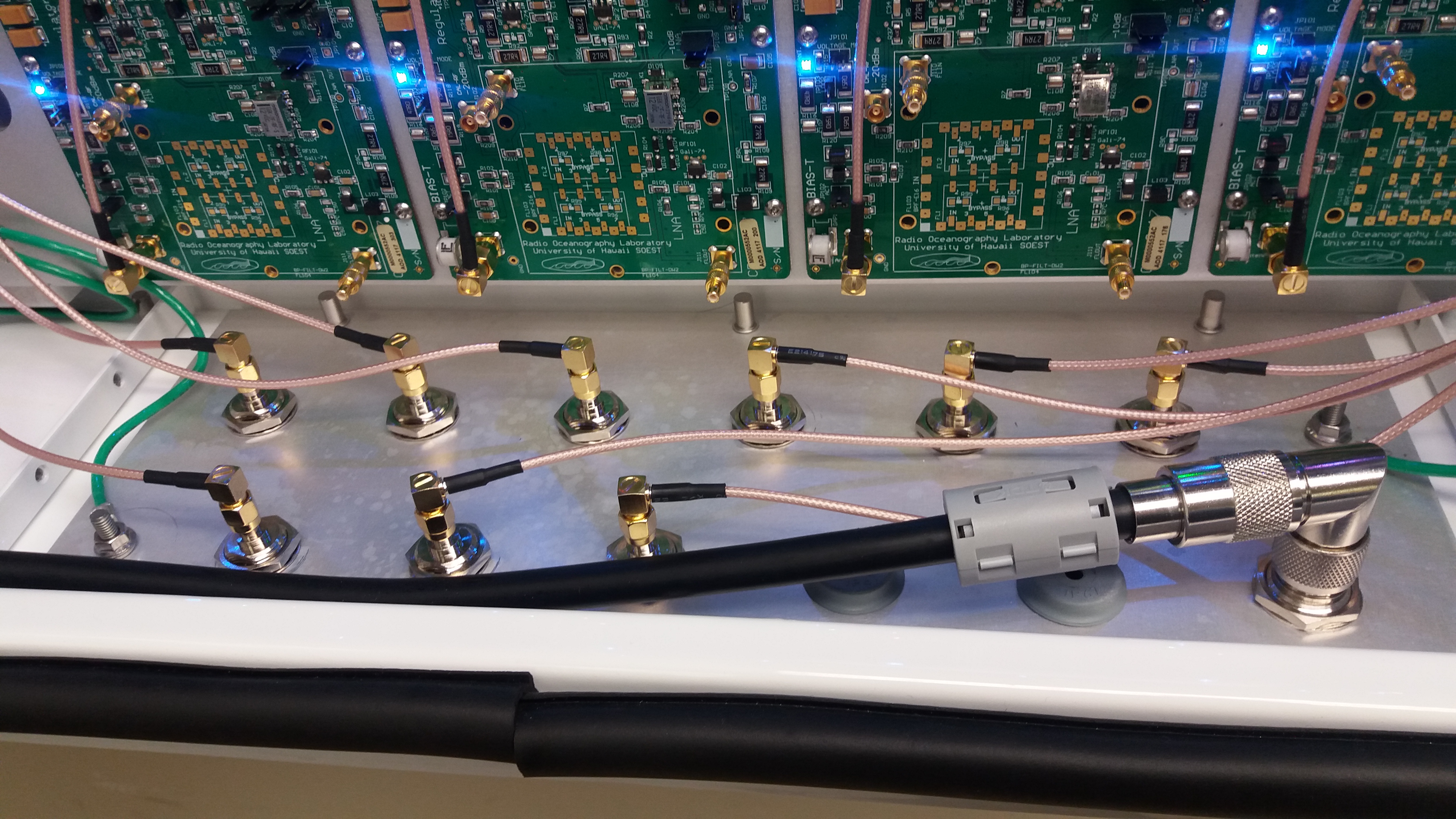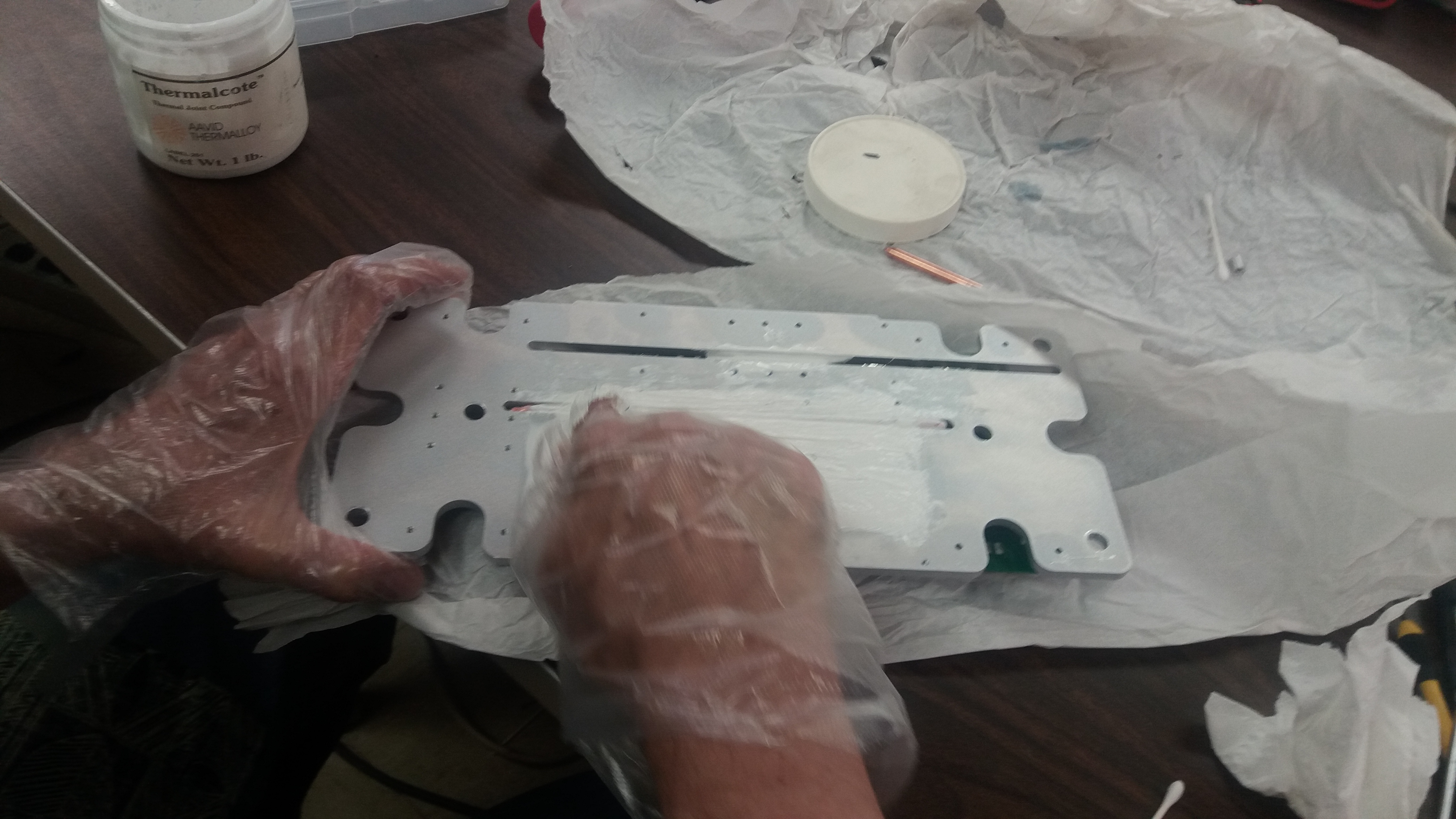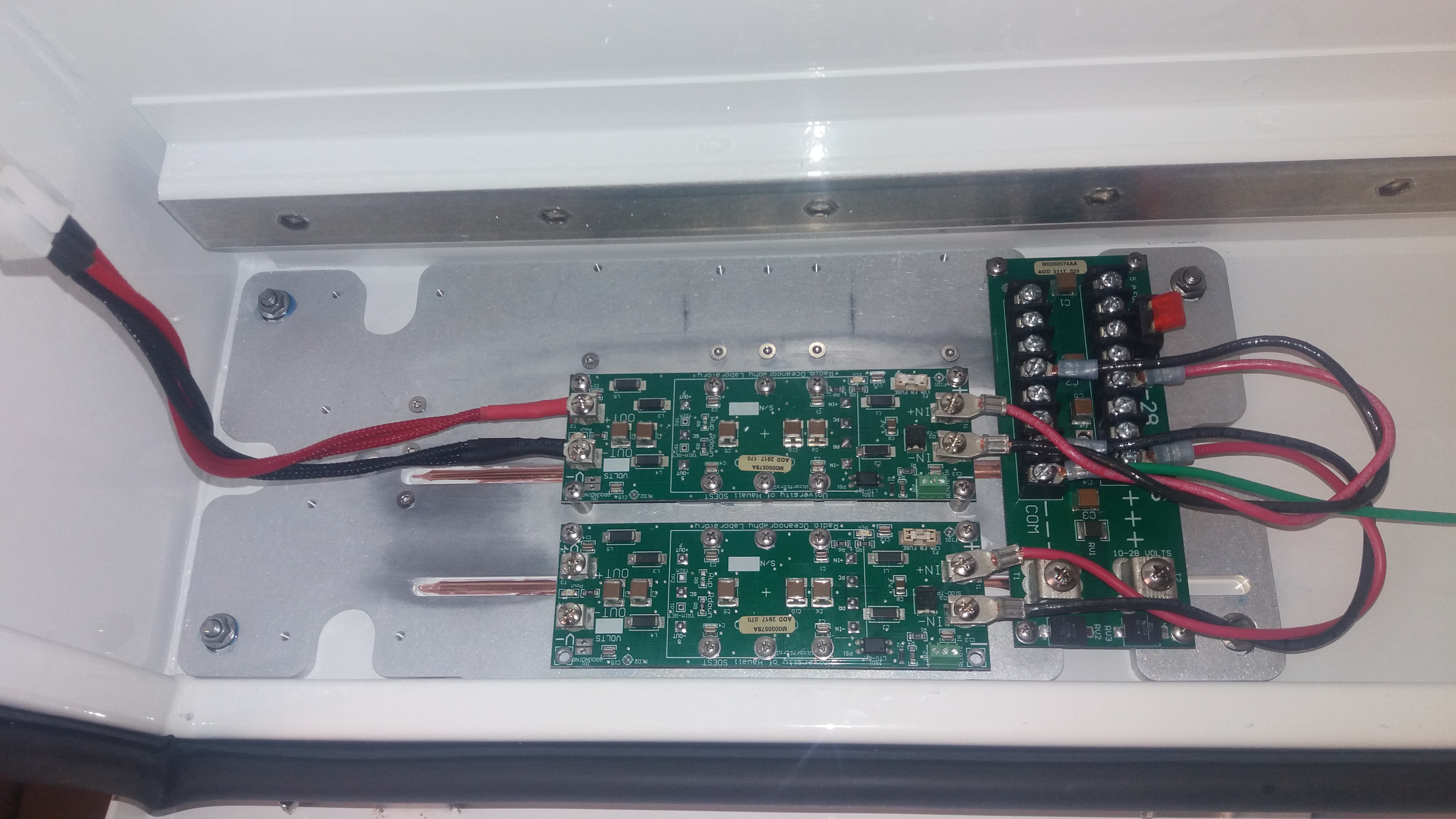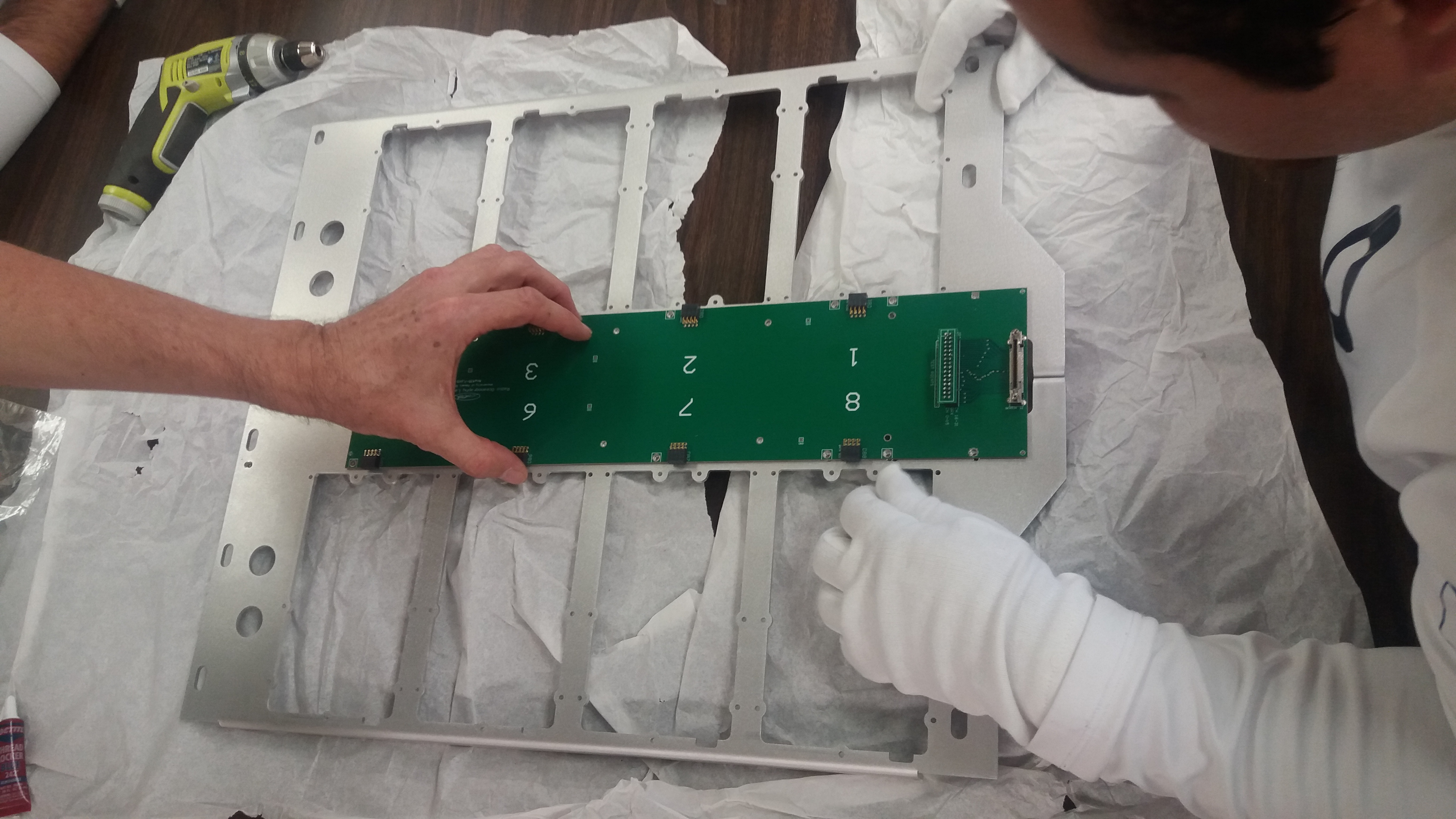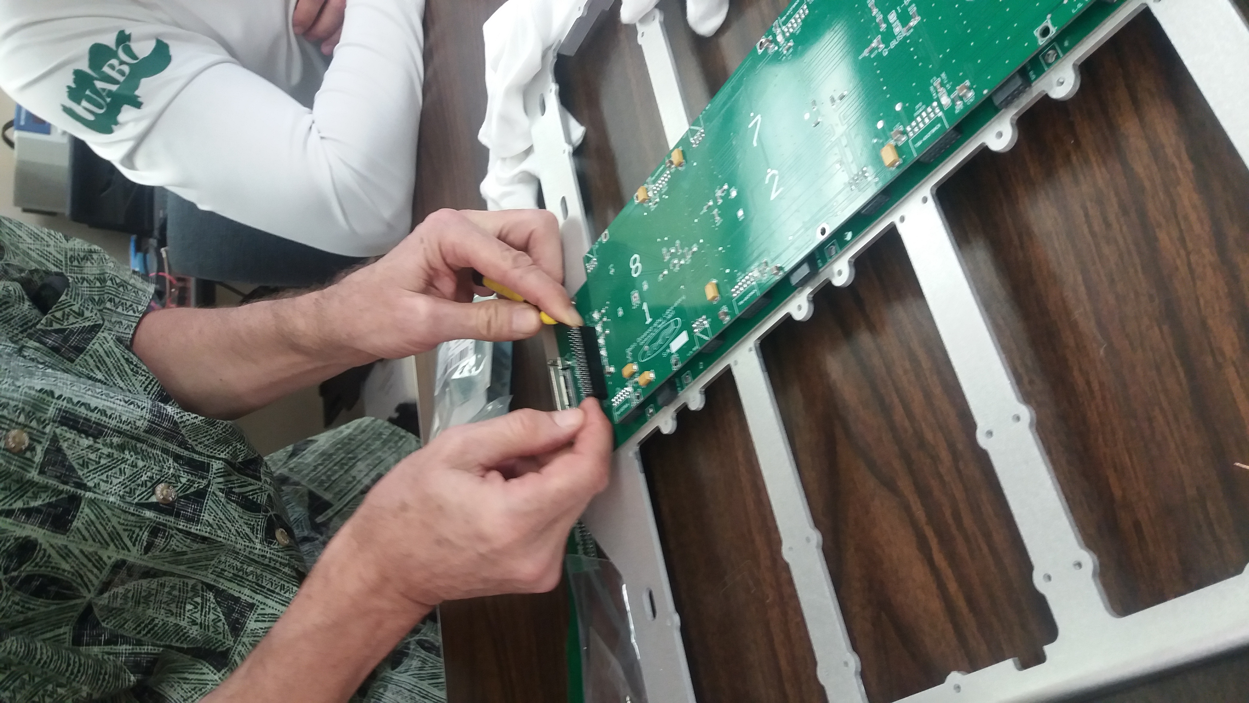 The plates are assembled on which the 8 crx cards will be placed. (Be careful with these plates because they can break if force is applied at certain points). The plates are going to be joined with 4 screws in the center and a glue (network) is applied so that they do not come loose (this will be placed at the end of the screw, the excess is removed). We must ensure that the two plates are even because above this anger the first plate with the antenna numbering (analog back plane) and it is important that they are even the bottom plates (preferably on a flat surface, it does not matter if the tabs are not at the same level, the important thing is that the top is at the same level. The first plate (analog black plane) is placed and on top of that the other plate is placed (LO back plane). To this plate we have to put the pins of the jumper, one is placed first and then others and on those the card will be soldered (circuit). The two plates are screwed to the base with 10 screws. Between the two plates are placed black spacers a single washer so that the connectors to the upper and lower plates are aligned. After installation, but thread lock onto the screws from underneath. Before putting the plate to the aluminum structure, you must check the length of the screws, so that they are not touching the bottom of the structure. At the end of the screw the glue (blue) is applied and excesses are cleaned. Note = the screws on the edge of the plate are shorter. Connect coaxial cables Before connecting the coaxial cables of the crx-8 plates to the antenna connectors, the liquid should be applied to clean connectors (contac lubricam) in order to avoid corroding (it should be applied a little more, avoid excesses) . It should also be put on the connectors where you can get noise like the scsi and the jumper. Power distribution supplies To have the complete plates of the vicor board the first thing that was done was to solder a resistance to the circuit and later a vicor module (v28c15c100bl) was incorporated in the lower part and the pins were soldered in the circuit, it is important that the welding cover the pin center and pass through the center of the pin to the bottom of the plate. The output of the plate must be 12.5 volts. (note = if we use 8 channels we will use 2 of these board and if we have 4 channels we use 1). Also, screw the little screws on the green connectors all the way in so they do not fall off. These circuits are put in turn in another base that is installed in the large structure (box), at the base of the vicor module a glue is applied and it is spread all over the base of this before putting it in the base, it is to ensure that the entrance of the vicor board that is being installed is on the correct side where it is going to connect with the input terminal board, in the holes where the vicor board is to be screwed, blue glue is applied. To install it is placed at the base of the vicor module on the other base and the base is moved a little to spread the pagemento but only a little. In the lower part of the base is applied glue and in the heat had (barilla) also before inserting in the orifices (if two plates are used also two heat pipes are used, care must be taken to install the correct side tuvos of heat). In the lower part of the plate glue is spread trying to cover where are the heat tuvos and part of the plate, also draw a square where the plate will go in the structure and also add glue. (NOTE = it is important that when the whole plate is installed in the structure it does not have the input card terminal because with the screw of the structure it does not fit well, so first the plate is placed in the structure and blue glue is applied to it. screw and then the input terminal card will be installed). You must clean excess glue. And they are going to put additional screws because the glue was coming out to the top of the plate. After everything is installed on the board, two cables will be connected per board between the vicor board and the input terminal board (if it has 8 channels, there will be 2 vicor board so 4 cables will be connected between the vicor board and the input terminal card). The black wire will always go in the row above (-) and the red in the row below (+), can be connected in any of the screws does not matter, except for the first one that corresponds to the ground in the input terminal, on the vicor board in the same way it is corroborated that the black wire is in the screw that says (-) and the red in which it says (+). On the other hand, at the output of the vicor board another 11 "cable is connected (make sure that black is on (-) and red on (+)) that goes to the power distribution. if you have 2 vicor plate there will be two cables that go to the power distribution plate, but if you have only one vicor in the same way you need the two cables, only in the vicor the two cables will be connected in the same place but in the power distribution anger connected as if we had two vicor plate). Antenna adapters (connector plate) The type M power connector (VHF connector) was installed in the lower right (for this the size of the hole had to be enlarged to 7.2 mm (confirm measurement)). To place the connector it put a nut, a guacha and an O-ring on the bottom (out) and on the top (in) a guacha and a nut. Later in the holes of the upper part we installed connectors type SMA to type N and in 3 holes of the lower left row (nut, guacha, plate in the upper part). to adjust kegs use 19 mm and 18 mm keys, so they are aligned. Note = if only 4 channels are used, black plugs are placed on the channels that are not going to be used. In the other two holes a gray plastic pressure plug was placed (it is placed towards the lower part (out)), before placing them with the deburring, the hole was softened and silicon (Heavy Duty silicone) was applied to lubricate them. Before installing the plate in the structure (box) apply blue glue in the screw holes (so that it doe