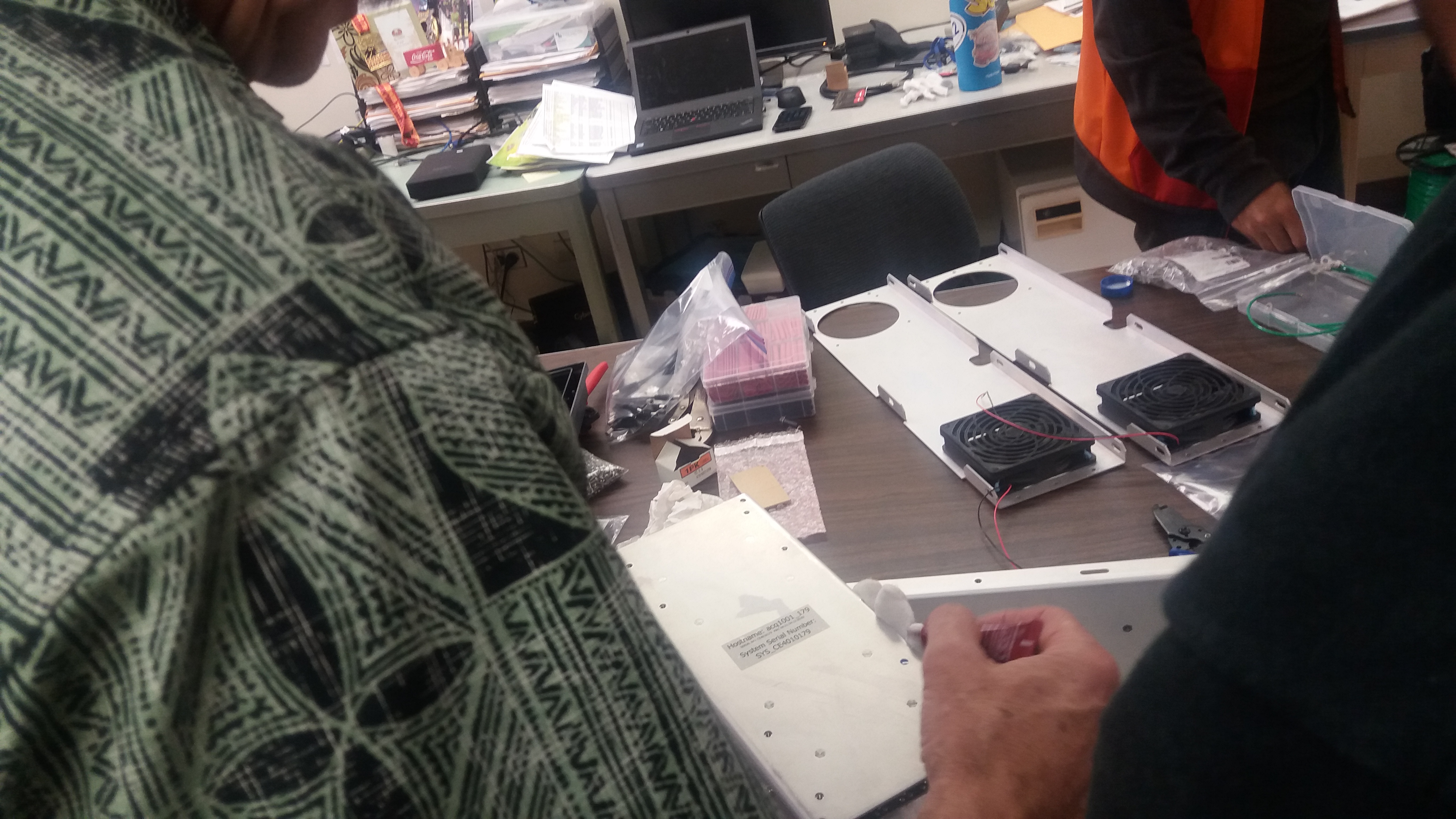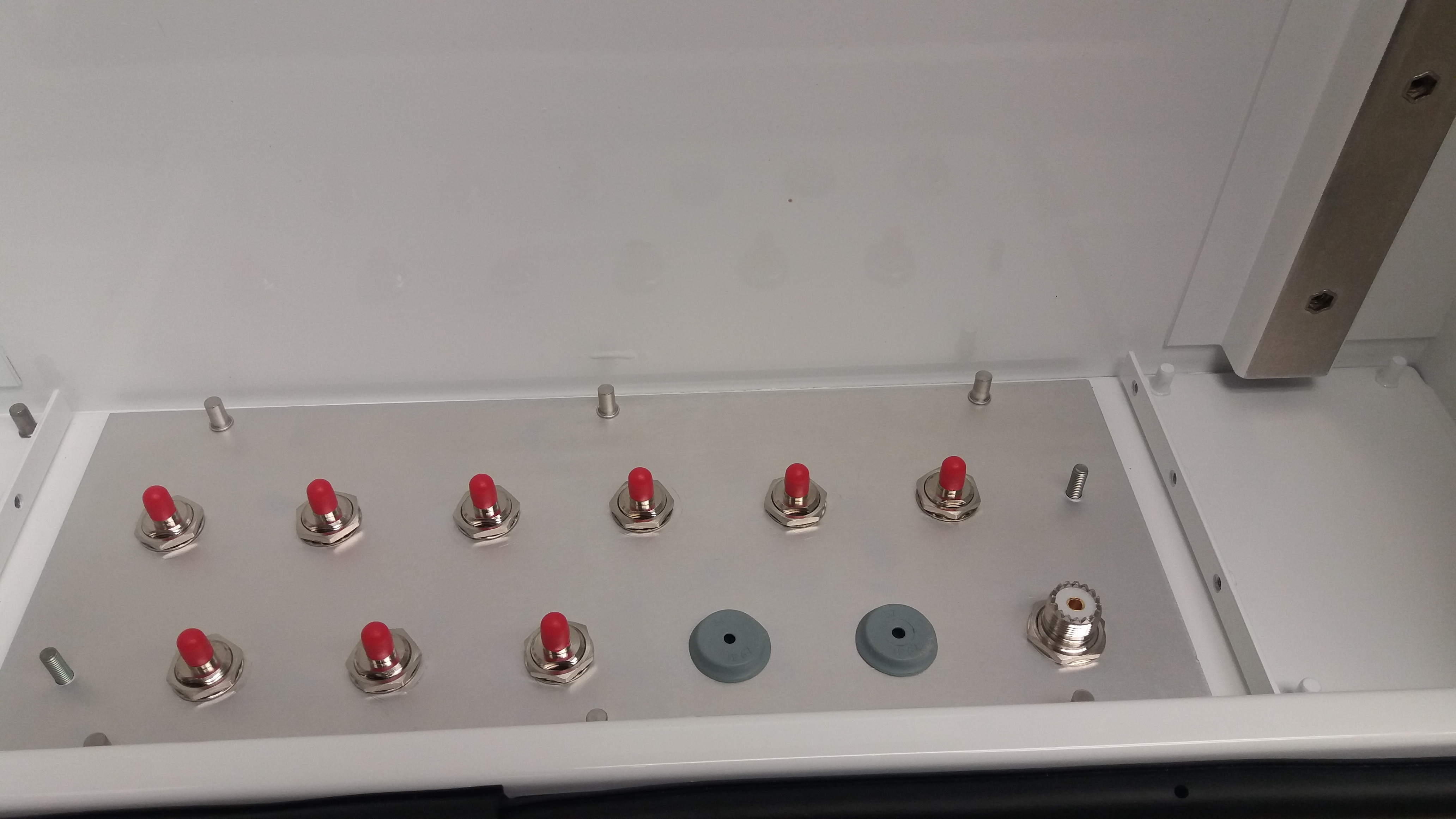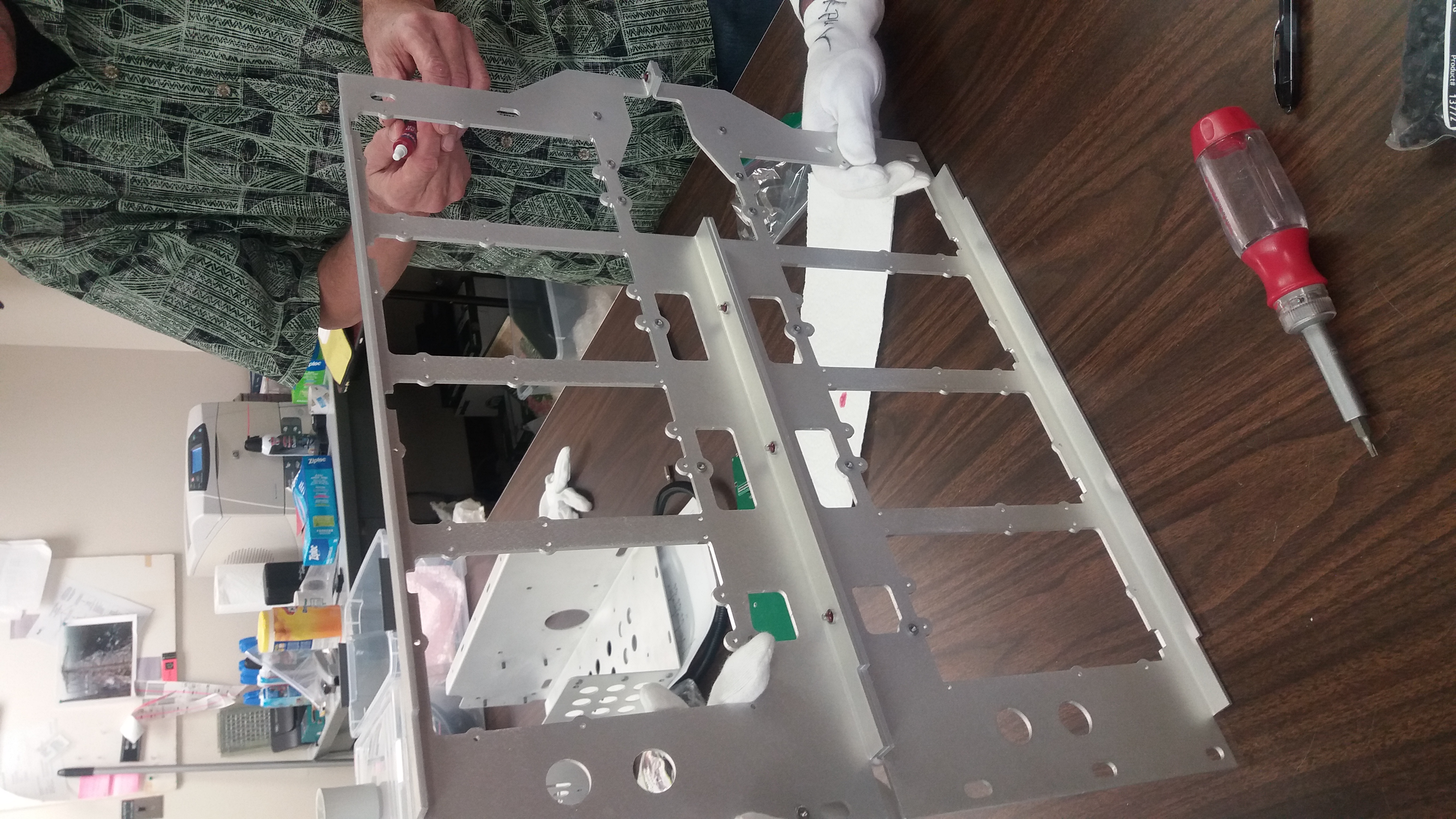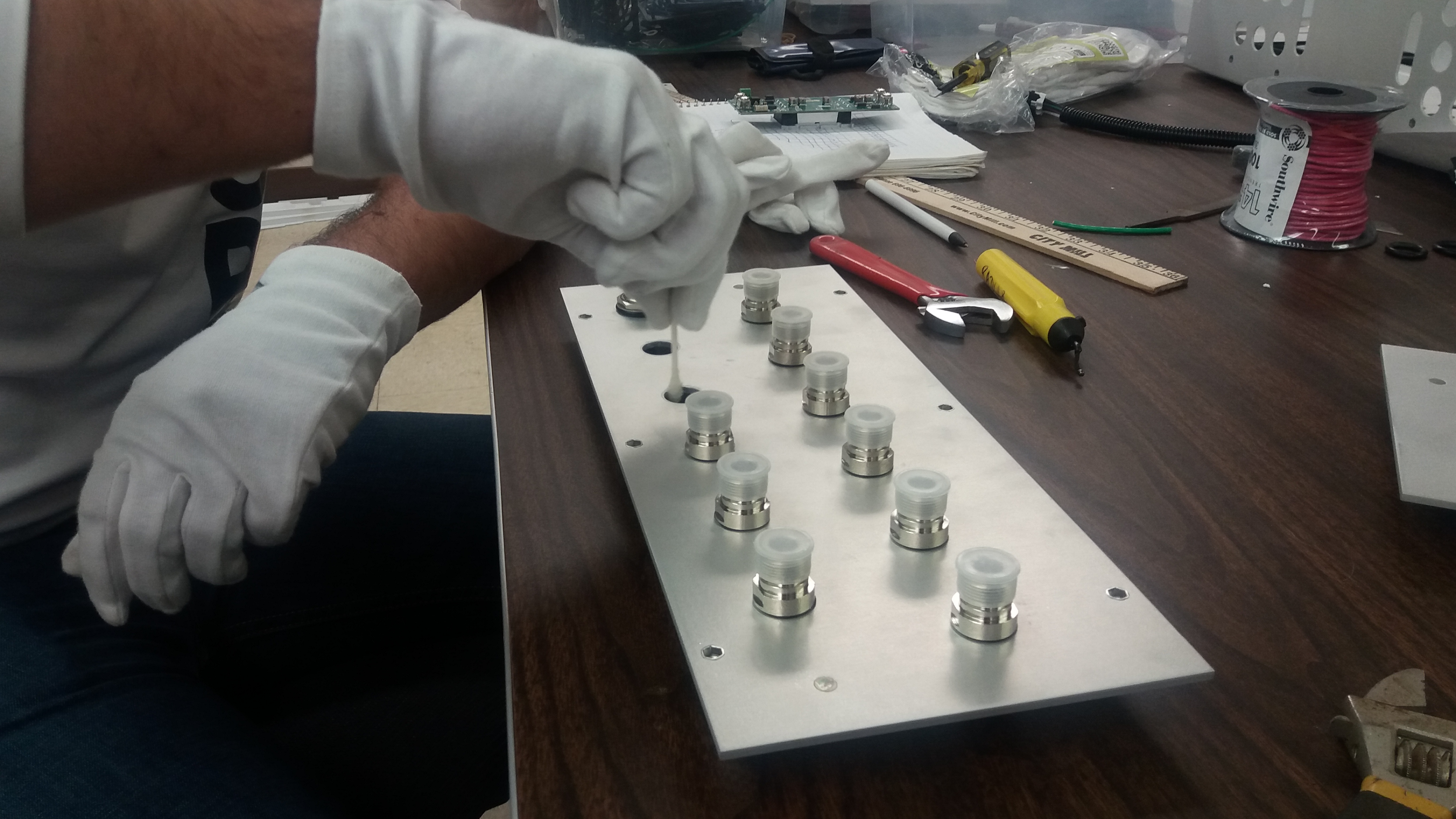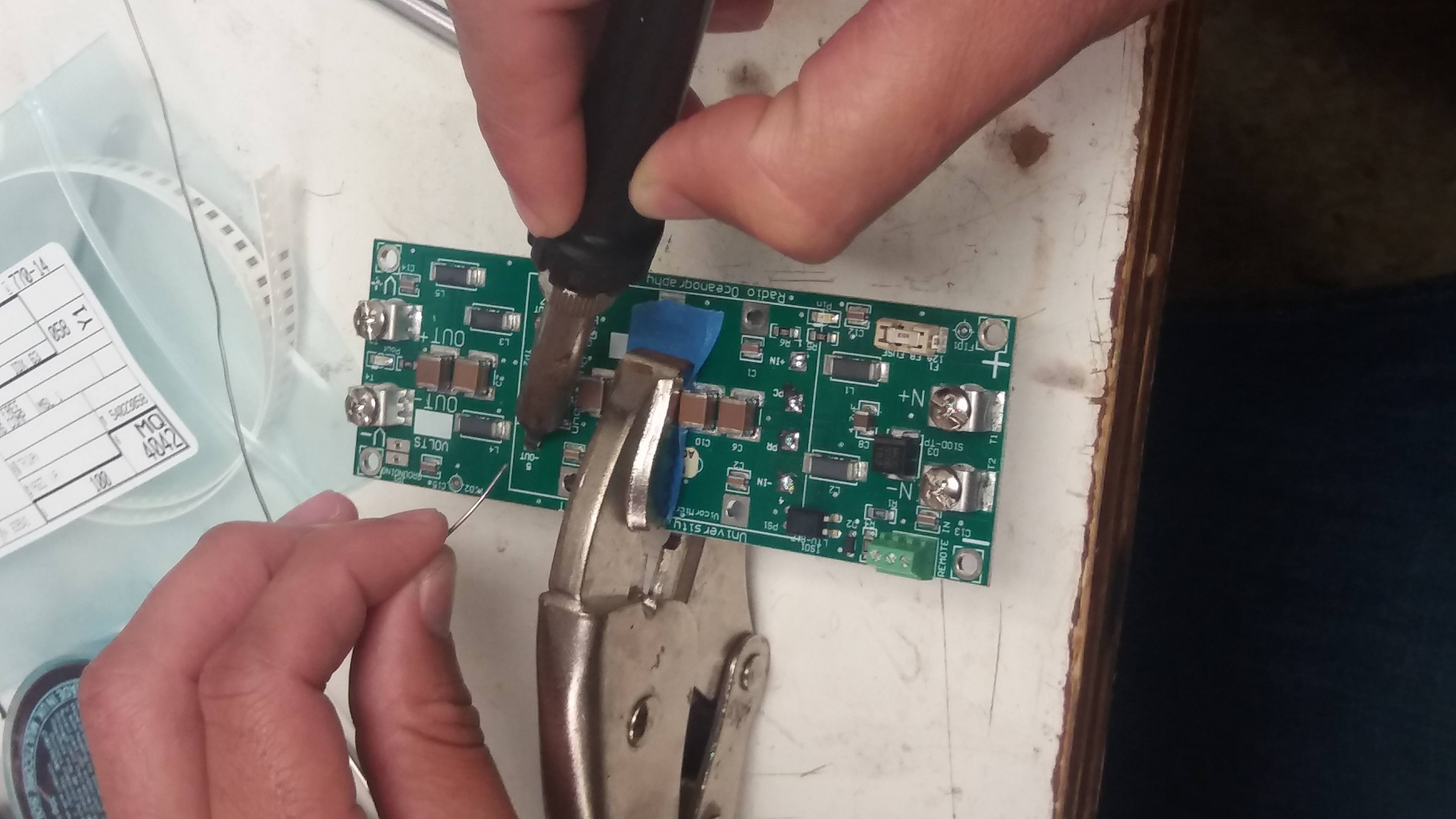 The plates are assembled on which the 8 crx cards will be placed. (Be careful with these plates because they can break if force is applied at certain points). The plates are going to be joined with 4 screws in the center and a glue (network) is applied so that they do not come loose (this will be placed at the end of the screw, the excess is removed). We must ensure that the two plates are even because above this anger the first plate with the antenna numbering (analog back plane) and it is important that they are even the bottom plates (preferably on a flat surface, it does not matter if the tabs are not at the same level, the important thing is that the top is at the same level. The first plate (analog black plane) is placed and on top of that the other plate is placed (LO back plane). To this plate we have to put the pins of the jumper, one is placed first and then others and on those the card will be soldered (circuit). The two plates are screwed to the base with 10 screws. Between the two plates are placed black spacers a single washer so that the connectors to the upper and lower plates are aligned. After installation, but thread lock onto the screws from underneath. Before putting the plate to the aluminum structure, you must check the length of the screws, so that they are not touching the bottom of the structure. At the end of the screw the glue (blue) is applied and excesses are cleaned. Note = the screws on the edge of the plate are shorter. Connect coaxial cables Before connecting the coaxial cables of the crx-8 plates to the antenna connectors, the liquid should be applied to clean connectors (contac lubricam) in order to avoid corroding (it should be applied a little more, avoid excesses) . It should also be put on the connectors where you can get noise like the scsi and the jumper. Power distribution supplies To have the complete plates of the vicor board the first thing that was done was to solder a resistance to the circuit and later a vicor module (v28c15c100bl) was incorporated in the lower part and the pins were soldered in the circuit, it is important that the welding cover the pin center and pass through the center of the pin to the bottom of the plate. The output of the plate must be 12.5 volts. (note = if we use 8 channels we will use 2 of these board and if we have 4 channels we use 1). Also, screw the little screws on the green connectors all the way in so they do not fall off. These circuits are put in turn in another base that is installed in the large structure (box), at the base of the vicor module a glue is applied and it is spread all over the base of this before putting it in the base, it is to ensure that the entrance of the vicor board that is being installed is on the correct side where it is going to connect with the input terminal board, in the holes where the vicor board is to be screwed, blue glue is applied. To install it is placed at the base of the vicor module on the other base and the base is moved a little to spread the pagemento but only a little. In the lower part of the base is applied glue and in the heat had (barilla) also before inserting in the orifices (if two plates are used also two heat pipes are used, care must be taken to install the correct side tuvos of heat). In the lower part of the plate glue is spread trying to cover where are the heat tuvos and part of the plate, also draw a square where the plate will go in the structure and also add glue. (NOTE = it is important that when the whole plate is installed in the structure it does not have the input card terminal because with the screw of the structure it does not fit well, so first the plate is placed in the structure and blue glue is applied to it. screw and then the input terminal card will be installed). You must clean excess glue. And they are going to put additional screws because the glue was coming out to the top of the plate. After everything is installed on the board, two cables will be connected per board between the vicor board and the input terminal board (if it has 8 channels, there will be 2 vicor board so 4 cables will be connected between the vicor board and the input terminal card). The black wire will always go in the row above (-) and the red in the row below (+), can be connected in any of the screws does not matter, except for the first one that corresponds to the ground in the input terminal, on the vicor board in the same way it is corroborated that the black wire is in the screw that says (-) and the red in which it says (+). On the other hand, at the output of the vicor board another 11 "cable is connected (make sure that black is on (-) and red on (+)) that goes to the power distribution. if you have 2 vicor plate there will be two cables that go to the power distribution plate, but if you have only one vicor in the same way you need the two cables, only in the vicor the two cables will be connected in the same place but in the power distribution anger connected as if we had two vicor plate). Antenna adapters (connector plate) The type M power connector (VHF connector) was installed in the lower right (for this the size of the hole had to be enlarged to 7.2 mm (confirm measurement)). To place the connector it put a nut, a guacha and an O-ring on the bottom (out) and on the top (in) a guacha and a nut. Later in the holes of the upper part we installed connectors type SMA to type N and in 3 holes of the lower left row (nut, guacha, plate in the upper part). to adjust kegs use 19 mm and 18 mm keys, so they are aligned. Note = if only 4 channels are used, black plugs are placed on the channels that are not going to be used. In the other two holes a gray plastic pressure plug was placed (it is placed towards the lower part (out)), before placing them with the deburring, the hole was softened and silicon (Heavy Duty silicone) was applied to lubricate them. Before installing the plate in the structure (box) apply blue glue in the screw holes (so that it doe
